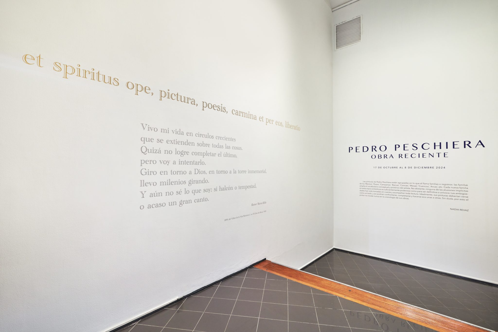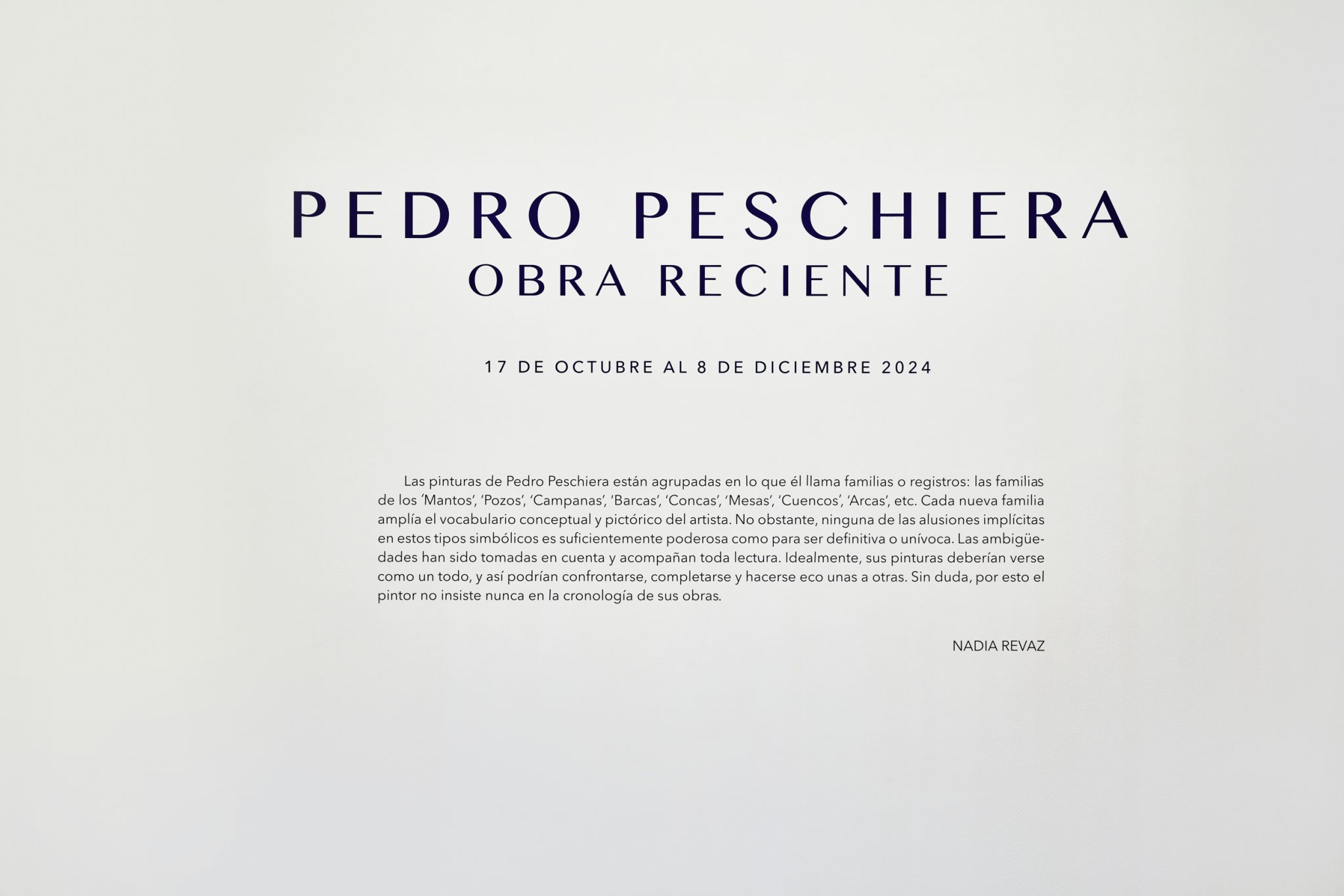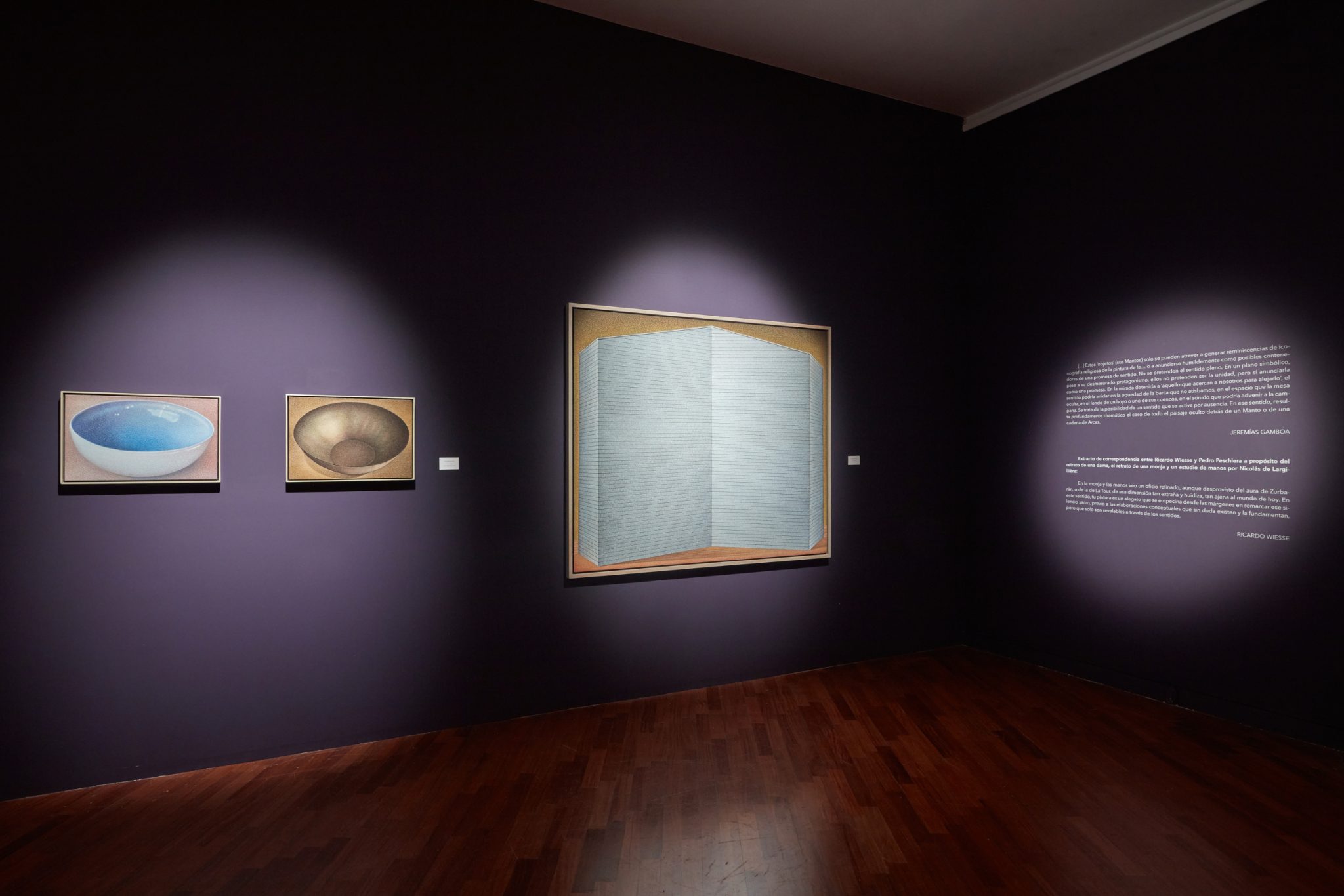 The 2024 exhibition “Obra reciente” at the Germán Krüger Espantoso showroom of the Instituto Cultural Peruano Norteamericano (ICPNA) in Lima presented a focused selection of recent work by Pedro Peschiera. The show brought together paintings from the series Mantos, Arcas, Karakoram paisajes, Bowls, and Tables, alongside watercolors, drawings, and preparatory sketches.